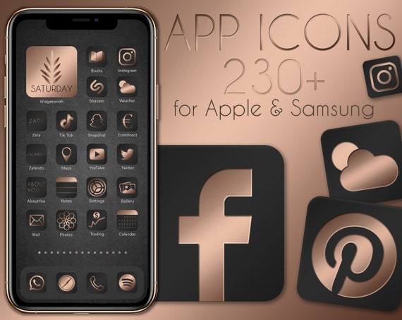App Icons Rosegold Black 230 Premium Iphone Apple And Etsy